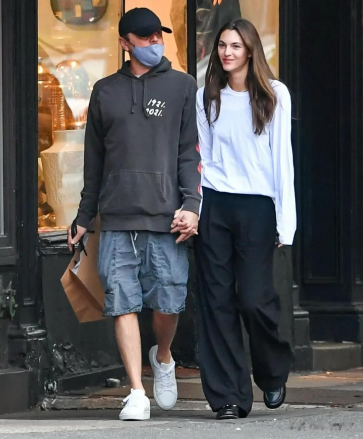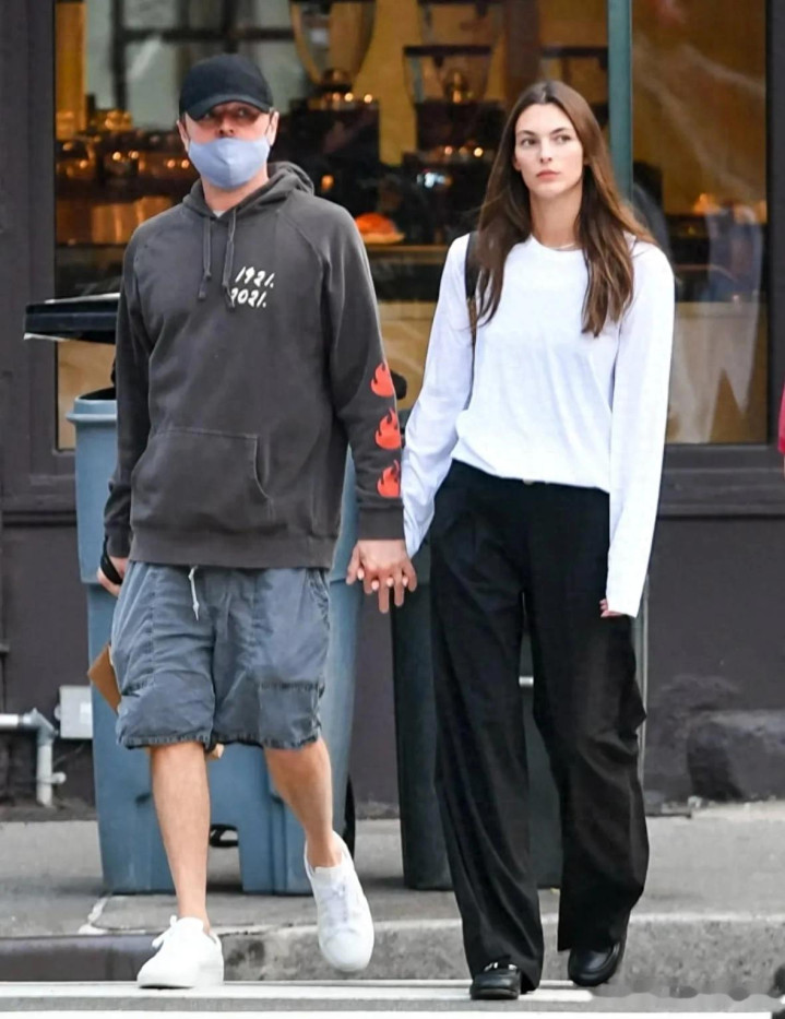 小李子穿着卫衣、短裤,十分休闲舒适。而女友Vittoria Ceretti则是穿着最基础的黑白配色的衣服,看起来简单随意,但又不失潮流,这可能就是超模的优势吧。